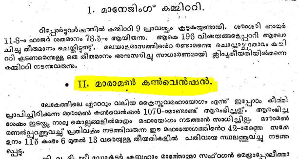 However, there is a possible error in the way the convention years have been numbered. Historical research by the Nalloor Library editorial team into the Mar Thoma Church archives have found evidence to support the fact that an error make have happened in the numbering of the Maramon Convention editions.