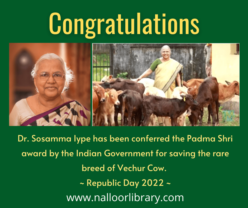Nalloor Library congratulates Dr. Sosamma Iype on being conferred this national honour.